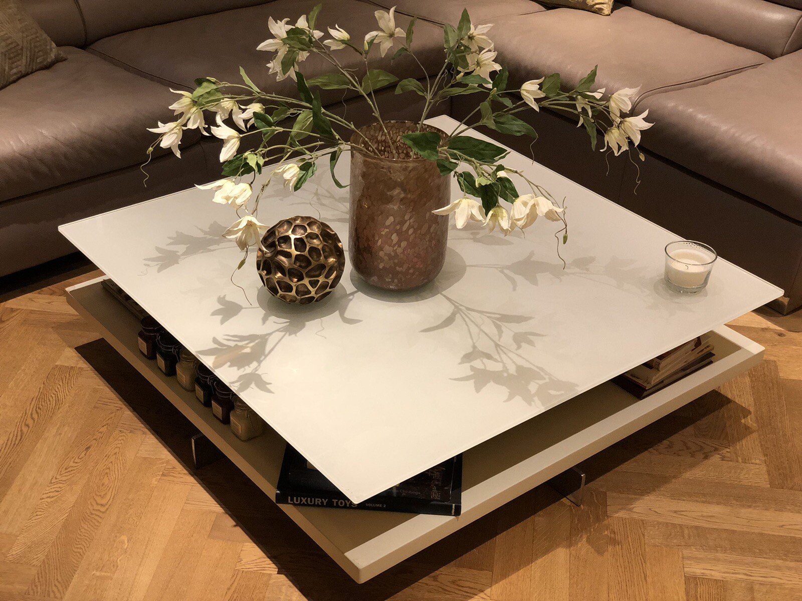 Ein Couchtisch macht Ihr Wohnzimmer erst komplett. Glasplatte 110 x 110cm 10mm dick vom Hülsta Couchtisch CT Minimale Gebrauchsspuren. TAFELS Salontafel CT 110.